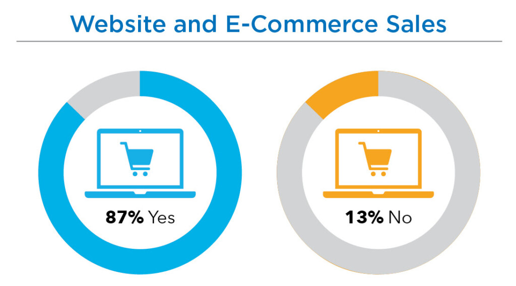 Everyone buys online, especially consumers. Yet business professionals are increasingly purchasing products by tapping into the power of the internet (see “Website and E-Commerce Sales” chart below). Distribution companies are responding by offering e-commerce solutions. When asked if they were generating website or e-commerce revenue, 87% said they were offered the option and saw sales. Yet in a follow-up question, the percentage of overall sales seems to avoid the e-commerce world, with 45% seeing less than 10% of revenue from online purchases. Only 6% of respondents see more than half of revenues tied to e-commerce efforts.
